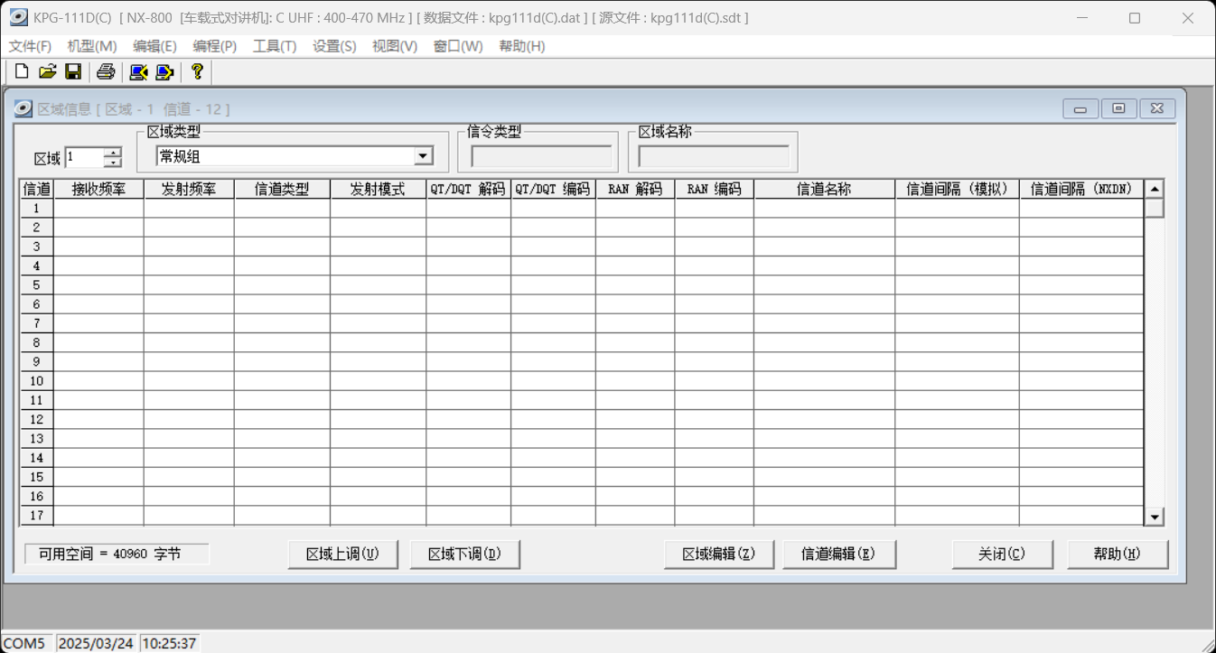 例如第二行 438.800 发射接收相同,信道类型和发射模式选择NXDN,信道名称随意,注意:信道间隔(NXDN)一定要选择 甚窄带(6.25K 带宽)