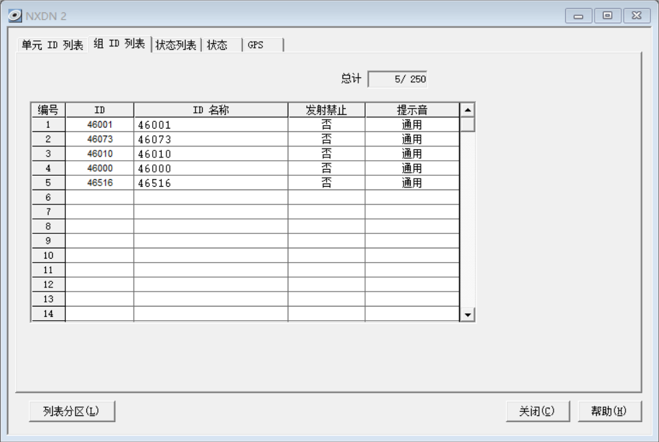 ID 列表编号(NXDN):1 (对应下面的序号)