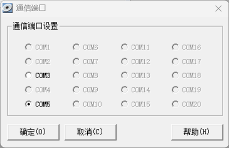 点击“设置”菜单,进入“通信端口设置”,选择COM5(对应设备管理器中的写频线端口)